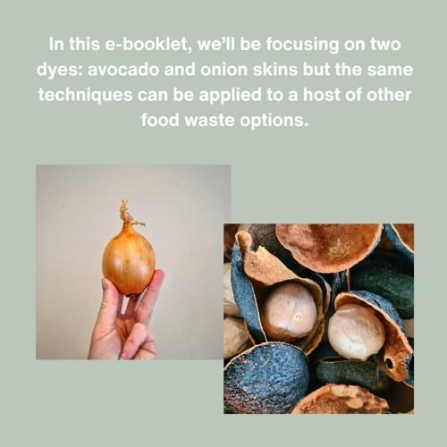 In this e-booklet, we’ll be focusing on two dyes: avocado and onion skins but the same techniques can be applied to a host of other food waste options.