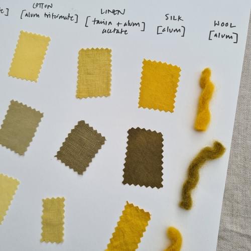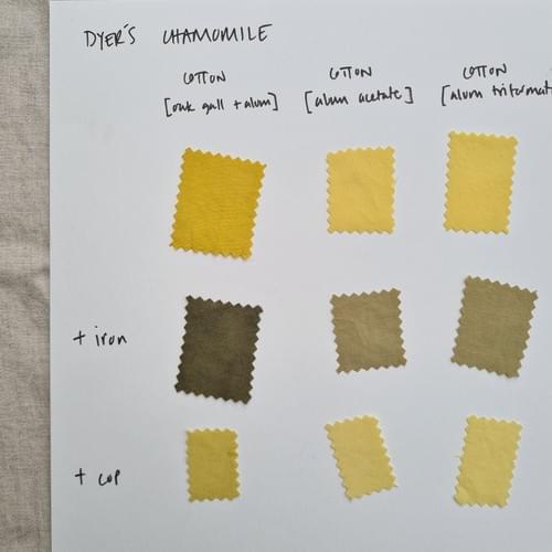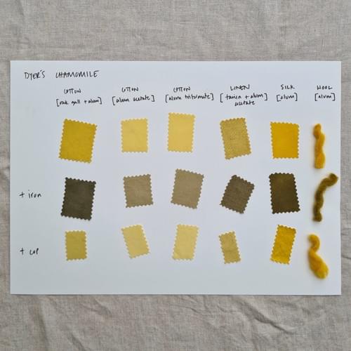 Dyer's Chamomile (anthemis tinctoria) can rich butter yellows that can be modified to a olive green depending on the mordant and dyeing method. Grown without chemicals or pesticides, each bloom is hand-harvested to ensure the highest quality for your dyeing needs.